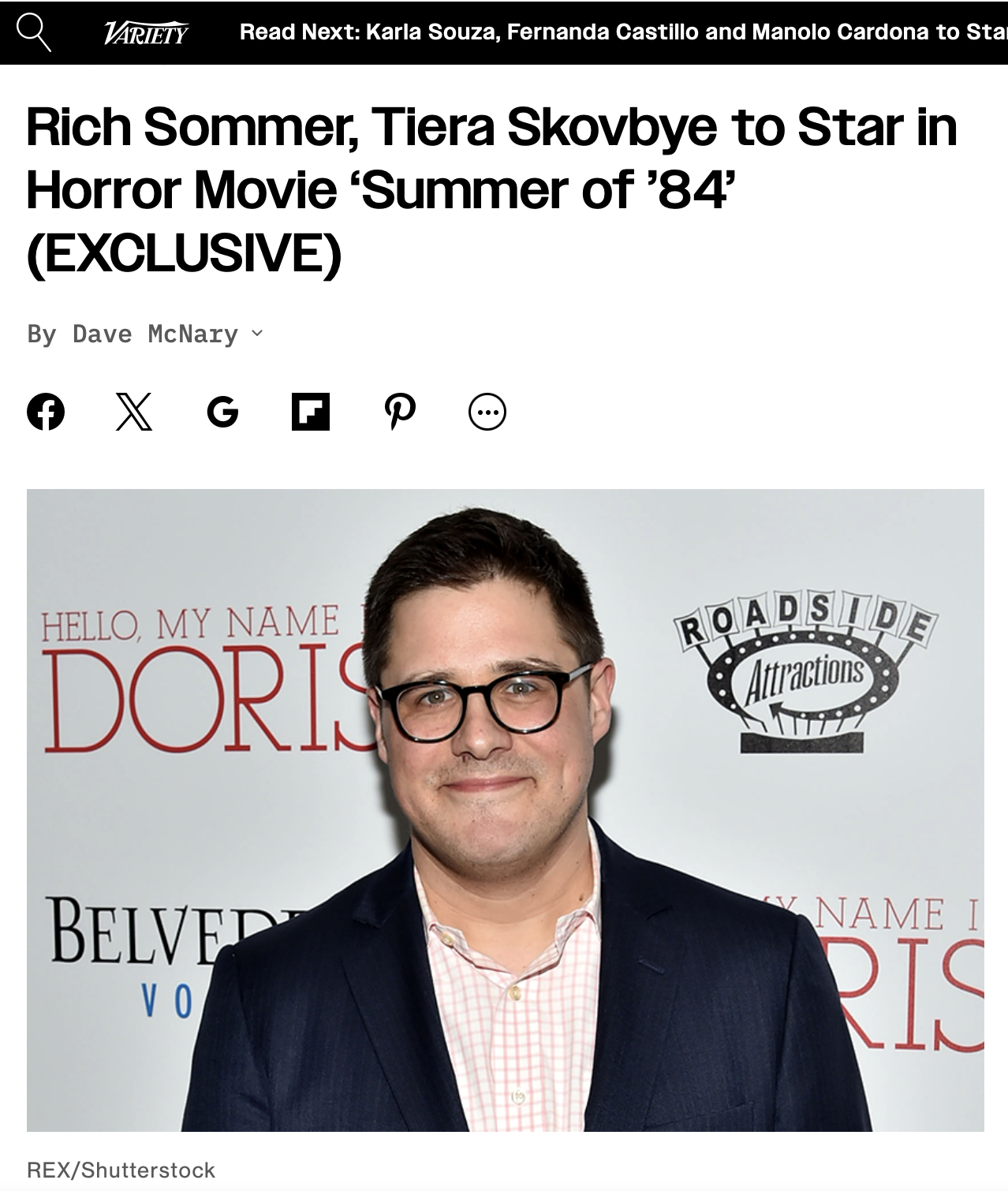 “Mad Men” star Rich Sommer and Tiera Skovbye of “Riverdale” are starring in the horror-thriller “Summer of ’84” with production beginning Wednesday in Vancouver, Variety has learned exclusively. Matt Leslie is producing with Jameson Parker and Shawn Williamson from Brightlight Pictures alongside Cody Zwieg who will oversee production for Gunpowder & Sky. François Simard, Anouk Whissell and Yoann-Karl Whissell are directing from a script by Leslie and writing partner, Stephen J. Smith.